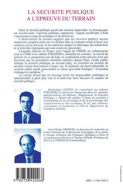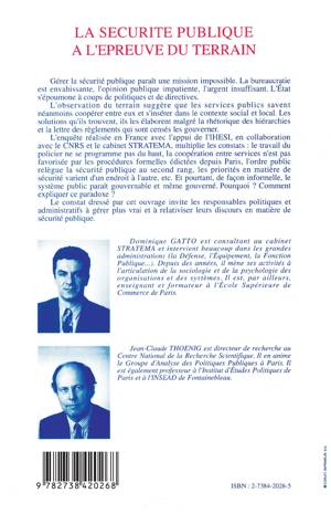 Gérer la sécurité publique paraît une mission impossible. La bureaucratie est envahissante, l'opinion publique impatiente, l'argent insuffisant. L'Etat s'époumone à coups de politiques et de directives.L'observation du terrain suggère que les services publics savent néanmoins coopérer entre eux et s'insérer dans le contexte social et local.