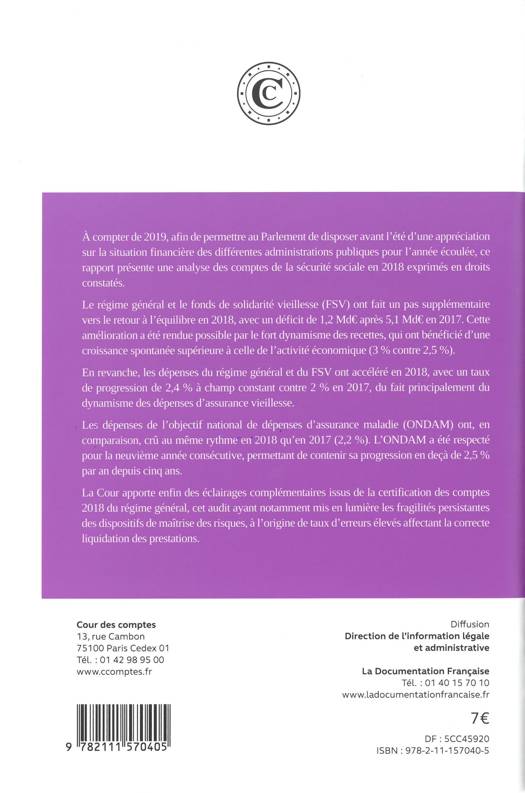À compter de 2019, afin de permettre au Parlement de disposer avant l'été d'une appréciation sur la situation financière des différentes administrations publiques pour l'année écoulée, ce rapport présente une analyse des comptes de la sécurité sociale en 2018 exprimés en droits constatés.