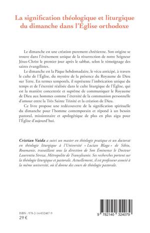 Le dimanche est une création purement chrétienne. Son origine se trouve dans l'événement unique de la résurrection de notre Seigneur Jésus-Christ le premier jour après le sabbat, selon le témoignage des saints évangélistes. Le dimanche est la Pâque hebdomadaire, le vécu anticipé, à travers le culte de l'Église, du mystère de la présence du Royaume de Dieu sur terre. En termes temporels, il représente l'imbrication unique du temps et de l'éternité réalisée dans le culte liturgique de l'Église, qui est la manière concentrée et suprême de communiquer le Royaume de Dieu aux hommes. Ce livre propose une redécouverte de la signification spirituelle du dimanche pour l'homme contemporain et répond à un besoin pastoral, missionnaire et apologétique de plus en plus aigu pour l'Église d'aujourd'hui.
