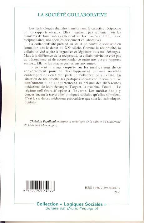 Les technologies digitales transforment le caractère réciproque de nos rapports sociaux. De réciprocitaires nos sociétés deviennent collaboratives. A la différence de la réciprocité, la collaborativité ne crée pas de dépendance entre nos divers rapports sociaux. En situation de réciprocité, les pratiques sociales se rencontrent, se confrontent, se concurrencent au prisme des différentes médiations de leurs échanges(l'argent, la machine, l'outil). Le régime collaboratif opère à l'inverse.
