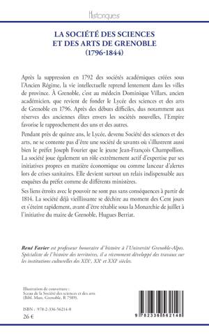 Après la suppression en 1792 des sociétés académiques créées sous l'Ancien Régime, la vie intellectuelle reprend lentement dans les villes de province. À Grenoble, c'est au médecin Dominique Villars, ancien académicien, que revient de fonder le Lycée des sciences et des arts de Grenoble en 1796. Après des débuts difficiles, dus notamment aux réserves des anciennes élites envers les sociétés nouvelles, l'Empire favorise le rapprochement des uns et des autres. Pendant près de quinze ans, le Lycée, devenu Société des sciences et des arts, ne se contente pas d'être une société de savants où s'illustrent aussi bien le préfet Joseph Fourier que le jeune Jean-François Champollion. La société joue également un rôle extrêmement actif d'expertise par ses initiatives propres en matière économique ou comme lanceur d'alertes lors de crises sanitaires. Elle devient surtout un relais indispensable aux enquêtes du préfet comme de différents ministères. Ses liens étroits avec le pouvoir ne sont pas sans conséquences à partir de 1814. La société déjà vieillissante se déchire au moment des Cent jours et s'éteint rapidement, avant d'être rétablie sous la Monarchie de juillet à l'initiative du maire de Grenoble, Hugues Berriat.