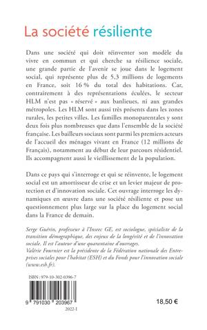 Dans une société qui doit réinventer son modèle du vivre en commun et qui cherche sa résilience sociale, une grande partie de l’avenir se joue dans le logement social, qui représente plus de 5,3 millions de logements en France, soit 16% du total des habitations. Car, contrairement à des représentations éculées, le secteur HLM n’est pas « réservé » aux banlieues, ni aux grandes métropoles. Les HLM sont aussi très présents dans les zones rurales, les petites villes. Les familles monoparentales y sont deux fois plus nombreuses que dans l’ensemble de la société française. Les bailleurs sociaux sont parmi les premiers acteurs de l’accueil des ménages vivant en France (12 millions de Français), notamment au début de leur parcours résidentiel. Ils accompagnent aussi le vieillissement de la population. Dans ce pays qui s’interroge et qui se réinvente, le logement social est un amortisseur de crise et un levier majeur de protection et d’innovation sociale. Cet ouvrage interroge les dynamiques en œuvre dans une société résiliente et pose un questionnement plus large sur la place du logement social dans la France de demain.