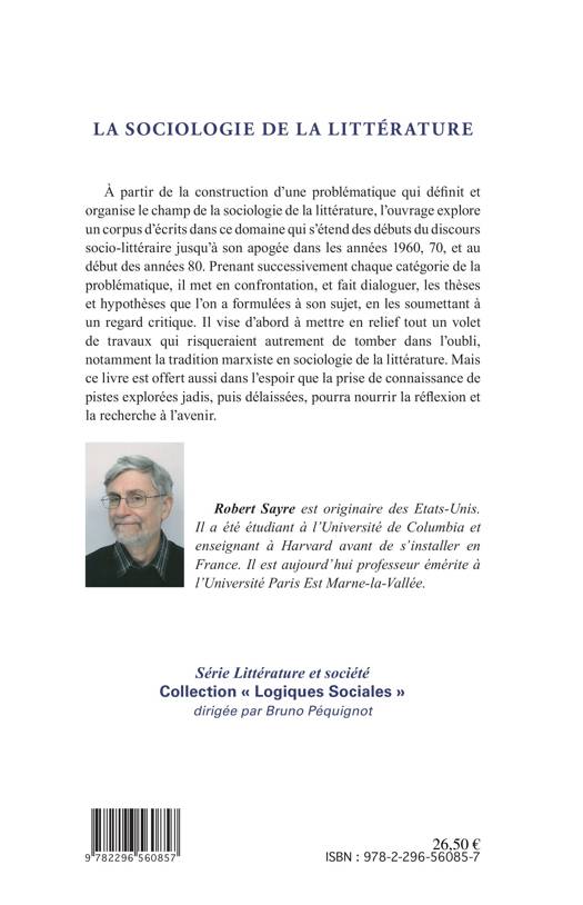A partir de la construction d'une problématique qui définit et organise le champ de la sociologie de la littérature, l'ouvrage explore un corpus d'écrits dans ce domaine qui s'étend des débuts du discours socio-littéraire jusqu'à son apogée dans les années 1960 70, et au début des années 80. Prenant successivement chaque catégorie de la problématique, il met en confrontation, et fait dialoguer, les thèses et hypothèses que l'on a formulées à son sujet, en les soumettant à un regard critique.