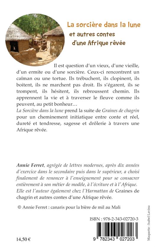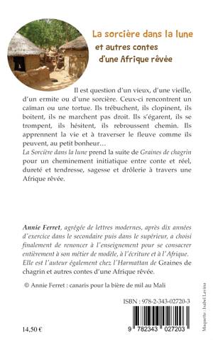 La Sorcière dans la lune prend la suite de Graines de chagrin pour un cheminement initiatique entre conte et réel, dureté et tendresse, sagesse et drôlerie à travers une Afrique rêvée. Il est question d'un vieux, d'une vieille, d'un ermite ou d'une sorcière. Ceux-ci rencontrent un caïman ou une tortue. Ils trébuchent, ils clopinent, ils s'égarent, ils se trompent, ils rebroussent chemin. Ils apprennent la vie et à traverser le fleuve comme ils peuvent...