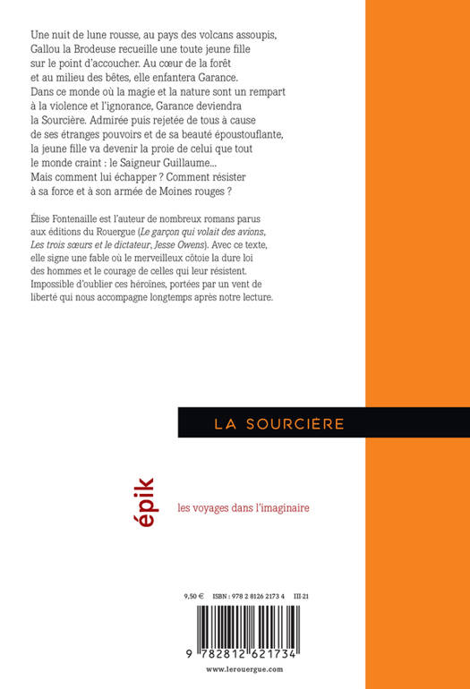 Au pays des volcans assoupis, une nuit de tempête, La Brodeuse recueille chez elle une enfant sur le point d'accoucher. Cette dernière mourra en couche, emportant avec elle son terrible secret et laissant à son hôte un bébé : Garance. La petite fille fascine son monde et ses pouvoirs n'y sont pas étrangers. Ses cheveux de feu, la renarde qui l'accompagne partout et sa beauté époustouflante non plus. Mais quand le seigneur local, aussi cruel que sanguinaire, découvre son existence, son obsession pour elle va tout bouleverser. Comment lui résister ? Comment échapper à sa force et à son armée de moines rouges ? Élise Fontenaille, pour la première fois, livre un magnifique roman de fantasy et conjugue le merveilleux avec une galerie d'héroïnes libres, courageuses et un peu sorcières...