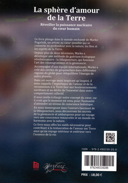 Ce livre plonge dans le monde enchanté de Marko Pogacnik, un artiste au cœur sensible qui se connecte en profondeur avec la nature, les fées et les esprits de la Terre. Depuis plus de deux décennies, Marko a développé une méthode de guérison écologique révolutionnaire : la lithoponcture, qui fusionne l'art des cosmogrammes et la géomancie. Accompagné d'une équipe internationale, Marko a créé des cercles de géoponcture dans différentes régions du globe pour rééquilibrer l'énergie de notre planète. Dans cet ouvrage aussi inspirant qu’inspiré, il nous rappelle l'importance de l'amour et de la reconnexion à la Terre face aux bouleversements sociétaux et au déclin de l'essentiel dans notre comportement collectif. Il nous invite à élargir notre concept du cœur, car il croit que le moment est venu pour l'humanité d'atteindre un niveau de conscience holistique. En nous immergeant dans l'univers fascinant de la lithoponcture, nous découvrons les secrets de la géomancie et embarquons pour un voyage vers une conscience renouvelée et un monde en harmonie avec la nature. Ce livre nous offre les outils nécessaires pour contribuer à la restauration de l'amour sur Terre ainsi qu’un voyage intérieur et extérieur vers l'essence de la vie.