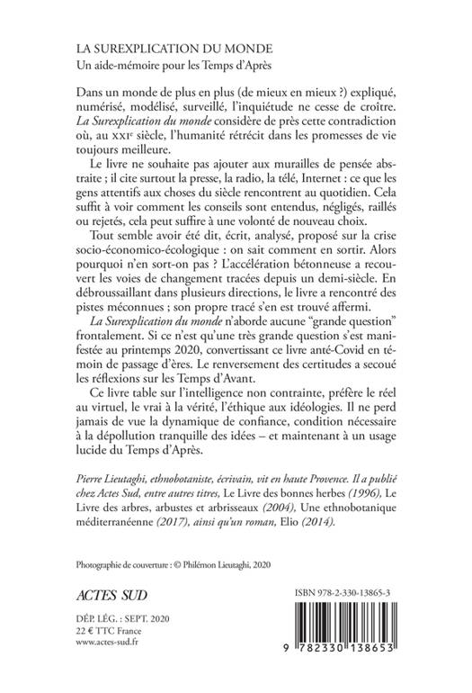 Aujourd'hui, qui pourrait encore ignorer que notre monde traverse une crise écologique et sociale d'une ampleur inégalée ? Les faits sont bien connus mais nous manquons cruellement de jalons pour l'affronter et repenser notre usage du monde. Privilégiant les sources accessibles à tous, Pierre Lieutaghi interroge sans relâche le réel, parfois en philosophe, parfois en conteur, toujours en humain libre et jamais résigné, et, ce faisant, explore et partage de nouveaux territoires d'idées. Au coeur de ceux-ci, il place la dynamique de la confiance, une force discrète et pourtant seule capable de contrecarrer la défaite annoncée, de fédérer les humains et de précéder leurs métamorphoses.