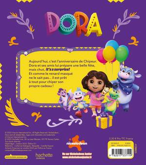 Aujourd’hui, c’est l’anniversaire de Chipeur. Dora et ses amis lui prépare une belle fête, mais chut, it’s a surprise! Et comme le renard masqué ne le sait pas… il est prêt à pour chiper son propre cadeau !
