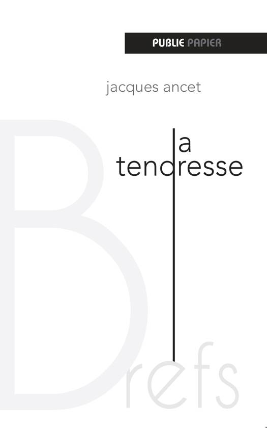 La tendresse prend naissance à l'instant où nous sommes rejetés sur le seuil de l'âge adulte et où nous rendons compte avec angoisse des avantages de l'enfance que nous ne comprenions pas quand nous étions enfants. Milan Kundera. Une litanie poétique, de très longues phrases et peut-être une seule phrase coupée par de respirations qui forme des pans ou des parties. D'entrée, on partage une sorte de gestation mystérieuse, dialogue secret d'une femme enceinte avec un « un » diffus. Puis se poursuit l'étirement de ce fil qui lie le « un » à soi, et La Tendresse s'explore dans cette capacité à surmonter la séparation, à en déjouer les vides et les trous noirs quand le « un » devient autre que soi, ces moments où l'on peut réussir à conserver des bribes, la gratitude exprimée à la vie, sous-jacente. Des pensées qui traversent ce que voit le regard et ce qu'entend l'oreille, cris d'enfants, l'espace de la nuit, des figures maigres et misérables, dans la tête posée sur la main, dans le geste d'écrire, « les mots sont une lente procession d'insectes, j'entends leur grésillement ». Cette capacité qu'a Jacques Ancet de fonctionner en cercles concentriques jusqu'à une moelle commune à tous mais que personne n'avait atteinte comme il le fait, avec cette méticulosité du mot, cet abandon et cette acceptation de laisser monter en soi ce qui bouleverse.