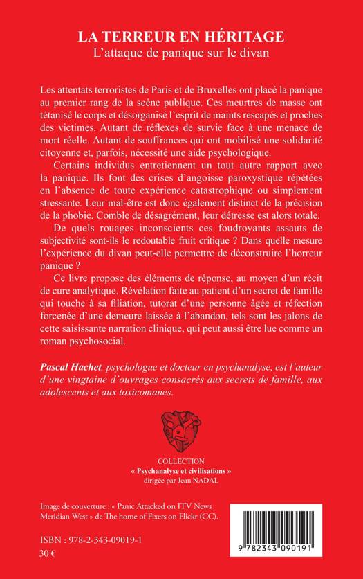 Les attentats terroristes de Paris et Bruxelles ont placé la panique au premier rang de la scène publique. Certains individus entretiennent un tout autre rapport avec la panique. Ils font des crises d'angoisse paroxystique en l'absence de toute expérience stressante ou catastrophique. De quels rouages inconscients ces foudroyants assauts de subjectivité sont-ils le fruit ? L'expérience du divan peut-elle permettre de déconstruire l'horreur panique ?