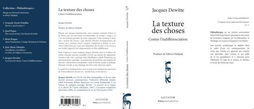 Depuis une époque immémoriale, nous sommes entourés d'êtres et de choses - des animaux et des plantes, des objets quotidiens, des bâtiments - qui ont une forme reconnaissable, un certain « visage », et c'est une donnée première de notre expérience. Cela contribue à tisser une « texture des choses » que diverses théories contemporaines, de concert avec certaines forces sociales, s'emploient à défaire ou tendent à nier. (« Il ne faut pas s'imaginer que le monde tourne vers nous un visage lisible », a déclaré Foucault). Ainsi s'effectue peu à peu, de diverses manières, une disparition des formes et un retour à une réalité supposée être originairement un flux indifférencié. Pour s'opposer à cette tendance à la fois intellectuelle et sociale, Jacques Dewitte met en évidence, à travers des lectures serrées, un terrain commun pouvant accueillir à la fois une pensée des apparences vivantes et du tact qu'exige toute classification (Adolf Portmann), un renouveau de la typologie en architecture (Léon Krier), une exigence de faire distinctions conceptuelles dans la théorie sociale et politique (Hannah Arendt), sans oublier une théologie des êtres créés selon leur espèce. Un petit livre fondamental, donc, au sens où il pose les fondements rationnels de l'émerveillement devant un « monde beau et très divers ». AUTEUR Jacques Dewitte est l'un de nos plus remarquables et de nos plus discrets penseurs contemporains. Traducteur d'Hannah Arendt, Adolf Portmann, Robert Spaemann ou Leszek Kolakowski, il est l'auteur de quelques ouvrages décisifs : Le pouvoir de la langue et la liberté de l' esprit (Michalon, 2007), L' exception européenne (Michalon, 2008), La manifestation de soi (La Découverte, 2010).
