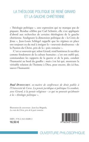 "Théologie politique" : une expression réactualisée par Carl Schmitt, et qui s'est appliquée d'abord aux recherches de certains théologiens de la gauche chrétienne. L'auteur de cet ouvrage rappelle que les régimes politiques ont toujours eu de mal à intégrer (pour mieux dépasser) le "souvenir douloureux" de la Passion du Christ, prix de la "paix romaine". C'est ce souvenir qui, selon René Girard, rend lumineux le sacrifice comme fondement de la culture humaine. Et c'est son oubli qui conduit l'humanité au bord du gouffre.