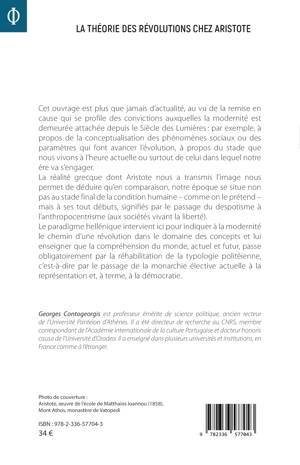 Cet ouvrage est plus que jamais d'actualité, au vu de la remise en cause qui se profile des convictions auxquelles la modernité est demeurée attachée depuis le Siècle des Lumières: par exemple, à propos de la conceptualisation des phénomènes sociaux ou des paramètres qui font avancer l'évolution, à propos du stade que nous vivons à l'heure actuelle ou surtout de celui dans lequel notre ère va s'engager. La réalité grecque dont Aristote nous a transmis l'image nous permet de déduire qu'en comparaison, notre époque se situe non pas au stade final de la condition humaine - comme on le prétend - mais à ses tout débuts, signifiés par le passage du despotisme à l'anthropocentrisme (aux sociétés vivant la liberté). Le paradigme hellénique intervient ici pour indiquer à la modernité le chemin d'une révolution dans le domaine des concepts et lui enseigner que la compréhension du monde, actuel et futur, passe obligatoirement par la réhabilitation de la typologie politéienne, c'est-à-dire par le passage de la monarchie élective actuelle à la représentation et, à terme, à la démocratie.