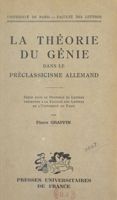 La théorie du génie dans le préclassicisme allemand E-BOOK