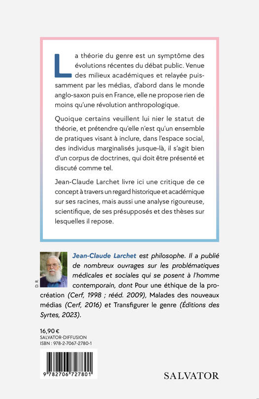 La théorie du genre occupe une place prépondérante dans le débat politique actuel. Venue des milieux académiques et relayée puissamment par les médias, d'abord dans le monde anglo-saxon puis en France, elle propose rien de moins qu'une révolution anthropologique, qui remet en question ce qui a toujours été tenu pour vrai dans la plupart des sociétés humaines. Quoique certains veuillent lui nier le statut de théorie, et la présenter comme un ensemble de pratiques visant à inclure dans l'espace social des individus marginalisés jusque-là, il s'agit bien d'un corpus de doctrines, qui doit être présenté comme tel, et discuté au cours d'un débat politique. Jean-Claude Larchet propose ici une critique en règle du concept, à la fois à travers un regard historique et académique sur ses racines, et par une analyse rigoureuse de ses présupposés et des thèses sur lesquelles il repose. La science est convoquée pour contredire les points saillants de la théorie du genre.