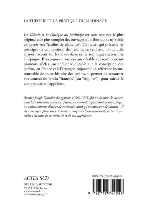 La Théorie et la pratique du jardinag»e est sans conteste le plus original et le plus complet des ouvrages du début du xviiie siècle consacrés aux jardins de plaisance. Ce livre, qui a connu de nombreuses éditions, en France et en Hollande, au xviiie siècle, est encore passionnant à lire aujourd'hui parce qu'il permet de retourner aux sources du jardin « français » (ou « régulier »), de le comprendre et de l'apprécier. Souvent plagié depuis lors, parfois pillé, encore très souvent cité de nos jours, ce livre est une référence incontournable de toute histoire des jardins en France et en Europe, voire aux États-Unis. Bible, traité, témoignage, code, tout invite à redécouvrir ce texte fondamental.