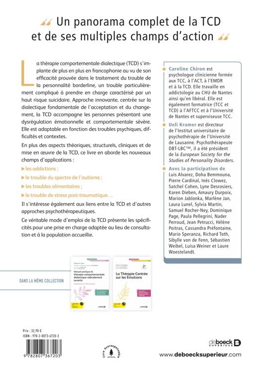 En plus des aspects théoriques, structurels, cliniques et de mise en oeuvre de la TCD, ce livre en aborde les nouveaux champs d’applications :