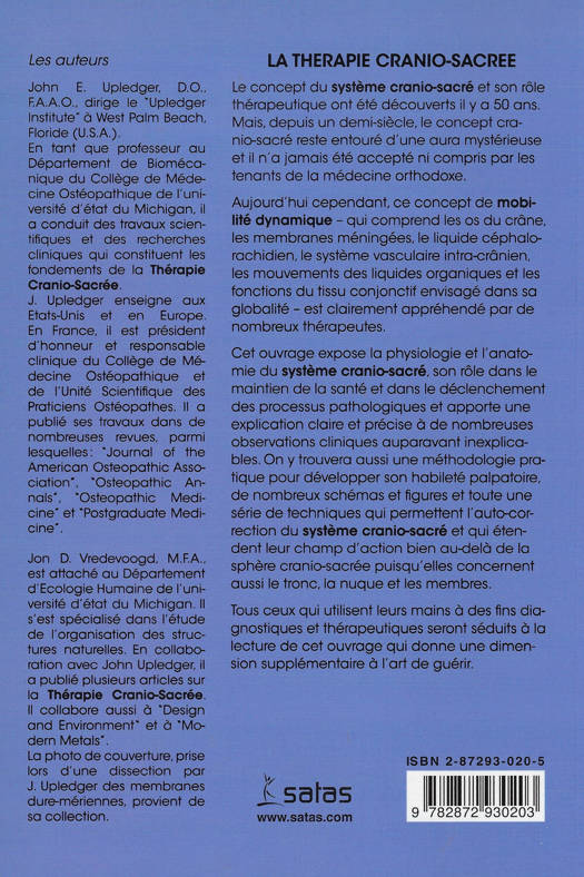 Le concept du système cranio-sacré et son rôle thérapeutique ont été découverts il y a 50 ans. Mais, depuis un demi-siècle, le concept cranio-sacré reste entouré d'une aura mystérieuse et il n'a jamais été accepté ni compris par les tenants de la médecine orthodoxe. Aujourd'hui cependant, ce concept de mobilité dynamique - qui comprend les os du crâne, les membranes méningées, le liquide céphalorachidien, le système vasculaire intra-crânien, les mouvements des liquides organiques et les fonctions du tissu conjonctif envisagé dans sa globalité - est clairement appréhendé par de nombreux thérapeutes. Cet ouvrage expose la physiologie et l'anatomie du système cranio-sacré, son rôle dans le maintien de la santé et dans le déclenchement des processus pathologiques et apporte une explication claire et précise à de nombreuses observations cliniques auparavant inexplicables. On y trouvera aussi une méthodologie pratique pour développer son habileté palpatoire, de nombreux schémas et figures et toute une série de techniques qui permettent l'auto-correction du système cranio-sacré et qui étendent leur champ d'action bien au-delà de la sphère cranio-sacrée puisqu'elles concernent aussi le tronc, la nuque et les membres. Tous ceux qui utilisent leurs mains à des fins diagnostiques et thérapeutiques seront séduits à la lecture de cet ouvrage qui donne une dimension supplémentaire à l'art de guérir.