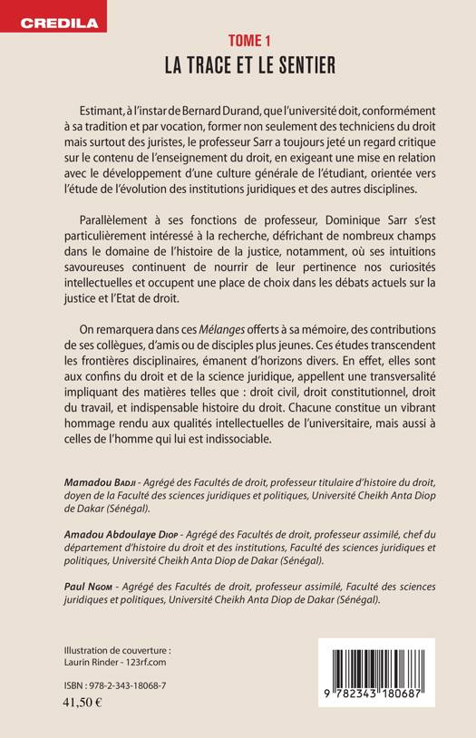 La trace et le sentier : mélanges dédiés au professeur Dominique Sarr. Vol. 1