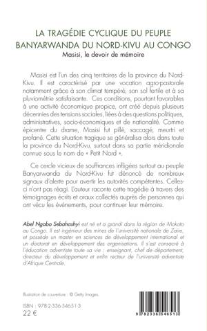 Masisi est l'un des cinq territoires de la province du Nord-Kivu. Il est caractérisé par une vocation agro-pastorale notamment grâce à son climat tempéré, son sol fertile et à sa pluviométrie satisfaisante. Ces conditions, pourtant favorables à une activité économique propice, ont créé depuis plusieurs décennies des tensions sociales, liées à des questions politiques, administratives, socio-économiques et de nationalité. Comme épicentre du drame, Masisi fut pillé, saccagé, meurtri et profané. Cette situation tragique se généralisa alors dans toute la province du Nord-Kivu, surtout dans sa partie méridionale connue sous le nom de Petit Nord . Ce cercle vicieux de souffrances infligées surtout au peuple Banyarwanda du Nord-Kivu fut dénoncé de nombreux signaux d'alerte pour avertir les autorités compétentes. Celles-ci n'ont pas réagi. L'auteur raconte cette tragédie à travers des témoignages écrits et oraux collectés auprès de personnes qui ont vécu les événements, pour continuer leur mémoire.