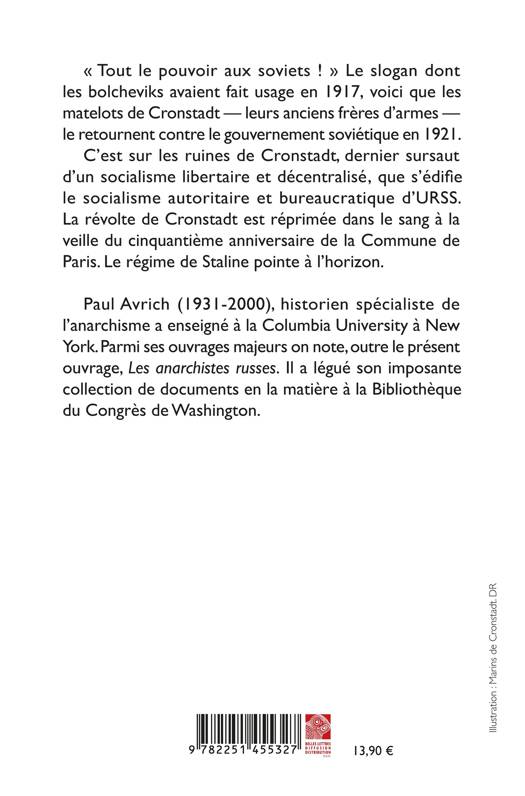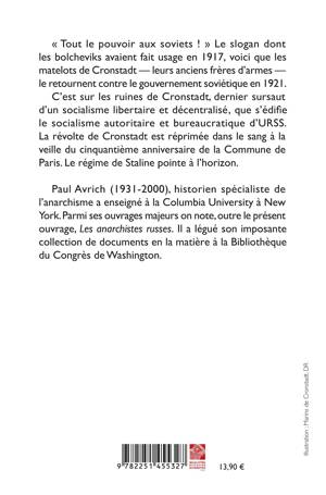 Tout le pouvoir aux soviets ! Le slogan dont les bolcheviks avaient fait usage en 1917, voici que les matelots de Cronstadt - leurs anciens freres d'armes - le retournent contre le gouvernement sovietique en 1921. C'est sur les ruines de Cronstadt, dernier sursaut d'un socialisme libertaire et decentralise, que s'edifie le socialisme autoritaire et bureaucratique d'URSS. La revolte de Cronstadt est reprimee dans le sang a la veille du cinquantieme anniversaire de la Commune de Paris. Le regime de Staline pointe a l'horizon.