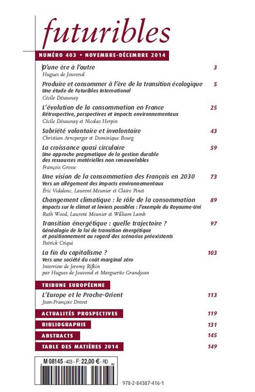 Produire et consommer à l’ère de la transition écologique. Une étude de Futuribles International Cécile Désaunay