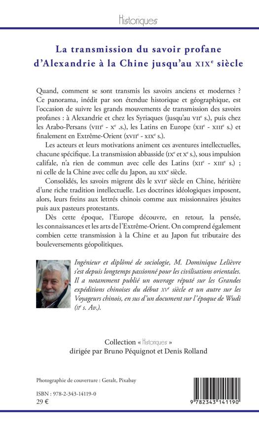 La transmission du savoir profane d'Alexandrie à la Chine jusqu'au XIXe siècle
