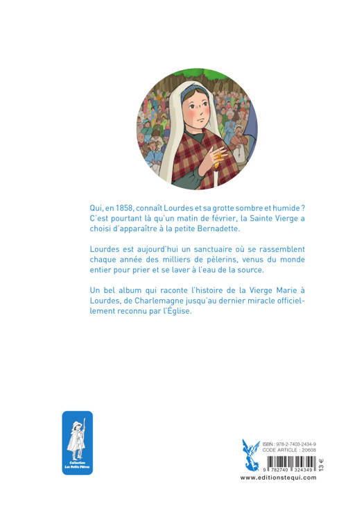 En ce 11 février 1858, la petite Bernadette, âgée de 11 ans, part ramasser du bois au bord du Gave. Elle ne se doute pas qu’elle a rendez-vous avec la Vierge Marie. Celle-ci lui apparaîtra 18 fois. Marie lui transmettra un message de conversion et de confiance. Et l’histoire ne s’arrête pas avec l’entrée de Bernadette chez les Sœurs de la Charité de Nevers ! De Charlemagne au dernier miracle reconnu par l'Église en 2018, ce livre balaie tous les événements marquants qui ont fait de Lourdes une des cités mariales les plus connues au monde. Un bel album à la fois historique et spirituel.