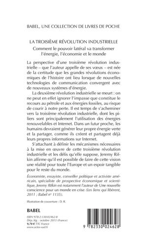 Nous sommes à la fin d'une ère, celle d'une économie fondée sur les énergies fossiles, le travail à temps plein, une gestion marchande du monde... et entrons dans ce que Rifkin appelle la troisième révolution industrielle, qui va bouleverser nos manières de vivre, de consommer, de travailler, d'être au monde. Une analyse lumineuse et providentielle de l'avenir de nos sociétés.