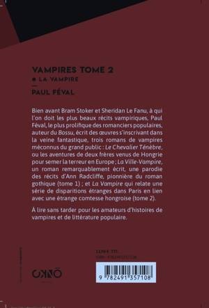 Le vampire fascine et peuple la littérature depuis des siècles. John Polidori l'a popularisé en 1819 avec sa célèbre nouvelle Un Vampire. Bien avant Bram Stoker et Sheridan Le Fanu, à qui l'on doit les plus beaux récits vampiriques, Paul Féval, le plus prolifique des romanciers populaires, auteur du Bossu, écrit des oeuvres s'inscrivant dans la veine fantastique, trois romans de vampires méconnus du grand public. Dans ce deuxième tome, La Vampire : En 1804 Paris est le théâtre d'une série d'étranges disparitions que l'on attribue à une femme vampire, une comtesse hongroise.