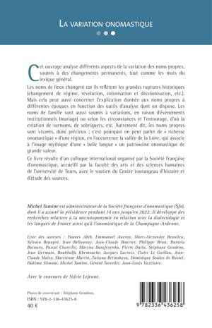 Cet ouvrage analyse différents aspects de la variation des noms propres, soumis à des changements permanents, tout comme les mots du lexique général. Les noms de lieux changent car ils reflètent les grandes ruptures historiques (changement de régime, révolution, colonisation et décolonisation, etc.). Mais cela peut aussi concerner l'explication donnée aux noms propres à différentes époques en fonction des outils d'analyse dont on dispose. Les noms de famille sont aussi soumis à variations, en raison d'évènements institutionnels ou selon les circonstances et l'entourage, d'où la création de surnoms, de sobriquets, etc. Autrement dit, les noms propres sont vivants, donc précieux; c'est pourquoi on peut parler de richesse onomastique d'une région, en l'occurrence la vallée de la Loire, qui associe à l'image mythique d'une belle langue un patrimoine onomastique de grande valeur.