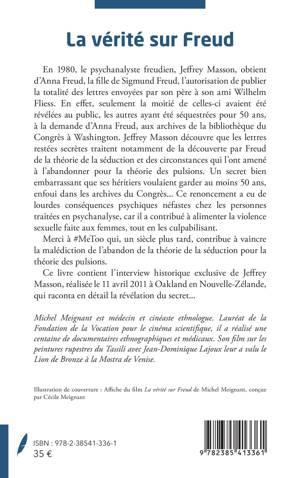 En 1980, le psychanalyste freudien, Jeffrey Masson, obtient d'Anna Freud, la fille de Sigmund Freud, l'autorisation de publier la totalité des lettres envoyées par son père à son ami Wilhelm Fliess. En effet, seulement la moitié de celles-ci avaient été révélées au public, les autres ayant été séquestrées es pour 50 ans, à la demande d'Anna Freud, aux archives de la bibliothèque du Congrès à Washington. Jeffrey Masson de couvre que les lettres restées secrètes traitent notamment de la découverte par Freud de la théorie de la séduction et des circonstances qui l'ont amené à l'abandonner pour la théorie des pulsions. Un secret bien embarrassant que ses héritiers voulaient garder au moins 50 ans, enfoui dans les archives du Congre s... Ce renoncement a eu de lourdes conséquences psychiques ne fastes chez les personnes traite es en psychanalyse, car il a contribué à alimenter la violence sexuelle faite aux femmes, tout en les culpabilisant. Merci à #MeToo qui, un siècle plus tard, contribué à vaincre la malédiction de l'abandon de la théorie de la séduction pour la théorie des pulsions. Ce livre contient l'interview historique exclusive de Jeffrey Masson, réalisée le 11 avril 2011 à Oakland en Nouvelle-Zélande, qui raconta en détail la révélation du secret...