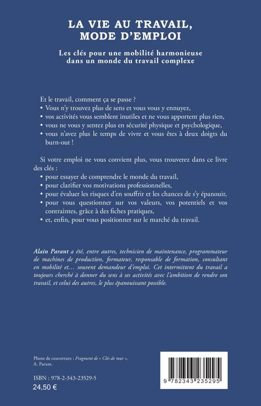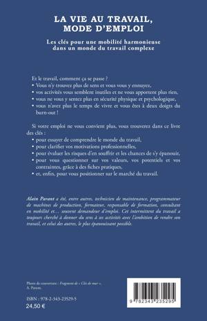 Et le travail, comment ça se passe ? Vous n’y trouvez plus de sens et vous vous y ennuyez, Vos activités vous semblent inutiles et ne vous apportent plus rien, Vous ne vous y sentez plus en sécurité physique et psychologique. Vous vous n’avez plus le temps de vivre et vous êtes à deux doigts du burn-out ! Si votre emploi ne vous convient plus, vous trouverez dans ce livre des clés : pour essayer de comprendre le monde du travail. Pour clarifier vos motivations professionnelles. Pour évaluer les risques d’en souffrir et les chances de s’y épanouir. Pour vous questionner sur vos valeurs, vos potentiels et vos contraintes, grâce à des fiches pratiques et, enfin, pour vous positionner sur le marché du travail.