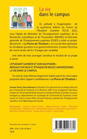 En prélude à l'organisation de la quatrième édition du Forum de l'Étudiant Guinéen (F.E.G) 2023, sous l'égide du Ministère de l'Enseignement supérieur, de la Recherche scientifique et de l'Innovation (MESRSI), la Direction générale de l'Enseignement supérieur (DGES) a initié un projet, dénommé : « La Plume de l'Étudiant », en vue de faire participer les étudiants guinéens à ce grand événement, à travers l'écriture de courts textes de 8 à 10 pages par candidat. Une série de trois ouvrages constitue le résultat de ce projet à savoir : L'étudiant guinéen et son quotidien ; Réseaux sociaux et éthique en milieu universitaire ; La vie dans le campus. Ce sont là trois thèmes largement traités parmi les neuf sujets proposés dans l'appel à candidatures « La Plume de l'Étudiant ».