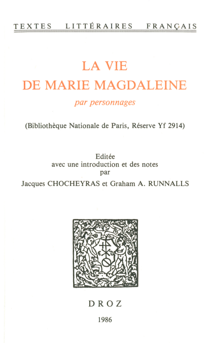Ce mystère, représenté à Lyon en 1500, appartient au théâtre médiéval : octosyllabes, avec diableries, "tyrans", merveilleux... Mais le texte nous en est transmis par un imprimé, également lyonnais de 1605. La dévotion pour sainte Marie-Madeleine et le goût populaire des mystères n'avaient pas disparu à l'époque baroque. Notre pièce n'illustre pas la scène du parfum répandu, mais le "miracle de Marseille" : la sainte et son frère convertissent le duc et la duchesse de Marseille, voyagent en terre sainte, font naufrage, sont miraculeusement sauvés et convertissent la ville par leur exemple.