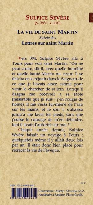Chaque année depuis, Sulpice Sévère faisait un voyage à Tours ; quelquefois même il y allait deux fois par an. Il était donc bien placé pour retracer la vie de l'évêque.