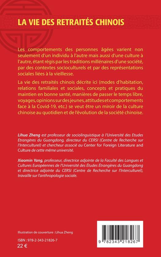 Les comportements des personnes âgées varient non seulement d’un individu à l’autre mais aussi d’une culture à l’autre, étant régis par les traditions millénaires d’une société, par des contextes socioculturels et par des représentations sociales liées à la vieillesse. La vie des retraités chinois décrite ici (modes d’habitation, relations familiales et sociales, concepts et pratiques du maintien en bonne santé, manières de passer le temps libre, voyages, opinions sur des jeunes, attitudes et comportements face à la Covid-19, etc.) se veut être un miroir de la culture chinoise au quotidien et de l’évolution de la société chinoise.