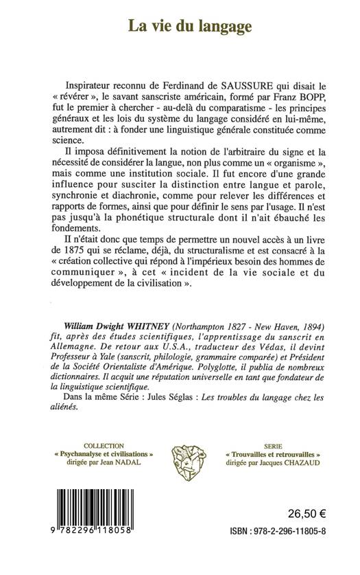 Inspirateur reconnu de Ferdinand de Saussure qui disait le "révérer" le savant américain, formé par Franz Bopp, fut le premier à chercher les principes généraux et les lois du système du langage considéré en lui-même, autrement dit à fonder une linguistique générale constituée comme science. Il imposa définitivement la notion de l'arbitraire du signe et la nécessité de considérer la langue, non plus comme un organisme, mais comme institution sociale.