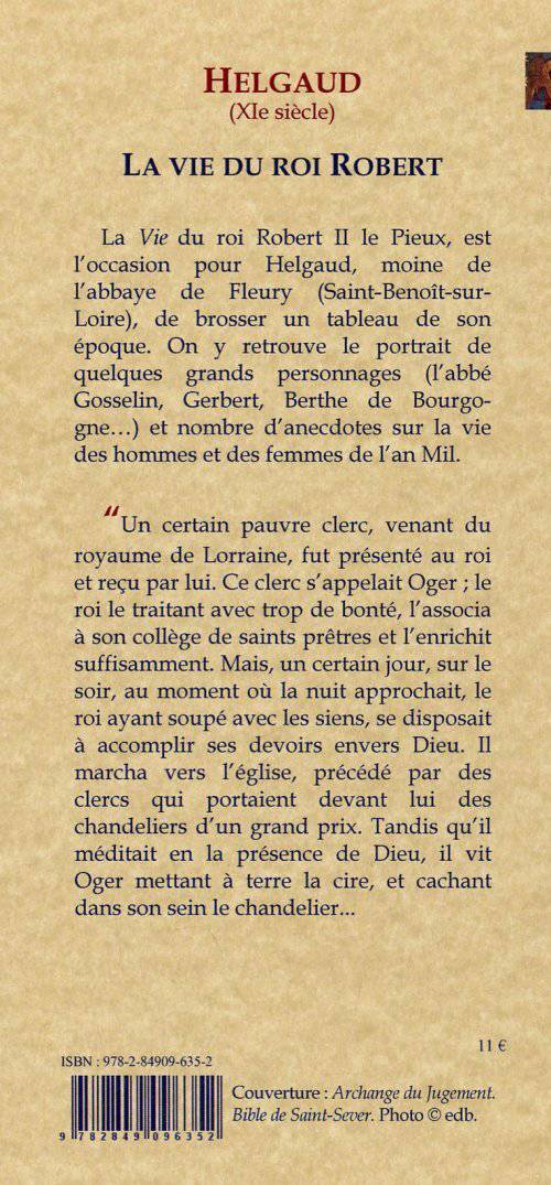 La Vie du roi Robert II le Pieux, est l'occasion pour Helgaud, moine de l'abbaye de Fleury (Saint-Benoît-sur-Loire), de brosser un tableau de son époque. On y retrouve le portrait de quelques grands personnages (l'abbé Gosselin, Gerbert, Berthe de Bourgogne...) et nombre d'anecdotes sur la vie des hommes et des femmes de l'an Mil.