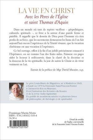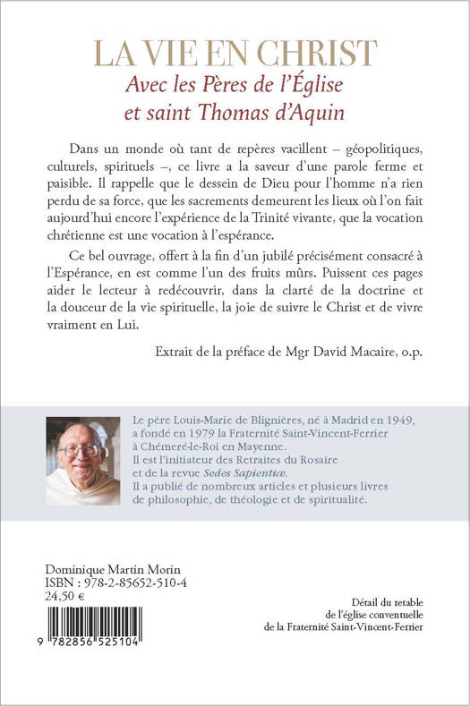Suivant l'ordre des sacrements de l'initiation chrétienne – baptême, confirmation, eucharistie –, l'auteur nous conduit à travers un itinéraire spirituel cohérent, profondément enraciné dans l'enseignement des Pères de l'Église et de saint Thomas d'Aquin. Soulignant la dimension spirituelle et mystique des sacrements, avec un vocabulaire simple, précis et efficace, le texte est aussi un enchaînement de petits paragraphes au titre très éclairant, ayant chacun sa cohérence propre et traitant d'un point précis. Le lecteur pourra donc aussi picorer çà et là avec profit. Dans un monde où tant de repères vacillent – géopolitiques, culturels, spirituels –, ce livre a la saveur d'une parole ferme et paisible. Il rappelle que le dessein de Dieu pour l'homme n'a rien perdu de sa force, que la vocation chrétienne est une vocation à l'espérance. Puissent ces pages aider le lecteur à redécouvrir, dans la clarté de la doctrine, la joie de suivre le Christ et de vivre vraiment en Lui.