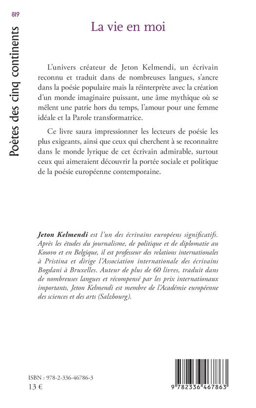 L’univers créateur de Jeton Kelmendi, un écrivain reconnu et traduit dans de nombreuses langues, s’ancre dans la poésie populaire mais la réinterprète avec la création d’un monde imaginaire puissant, une âme mythique où se mêlent une patrie hors du temps, l’amour pour une femme idéale et la Parole transformatrice. Ce livre saura impressionner les lecteurs de poésie les plus exigeants, ainsi que ceux qui cherchent à se reconnaître dans le monde lyrique de cet écrivain admirable, surtout ceux qui aimeraient découvrir la portée sociale et politique de la poésie européenne contemporaine.