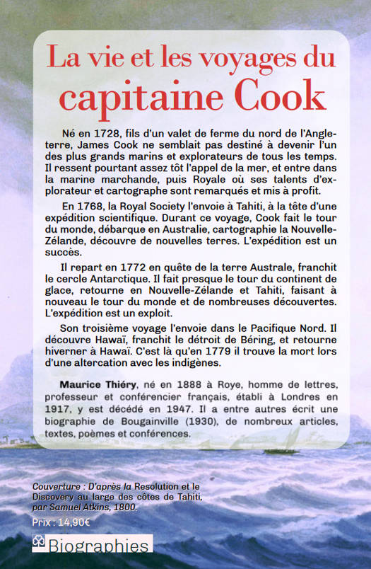Né en 1728, fils d’un valet de ferme du nord de l’Angleterre, James Cook ne semblait pas destiné à devenir l’un des plus grands marins et explorateurs de tous les temps. Il ressent pourtant assez tôt l’appel de la mer, et entre dans la marine marchande, puis Royale où ses talents d’explorateur et cartographe sont remarqués et mis à profit.