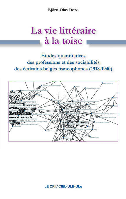 « Études quantitatives des professions et des sociabilités des écrivains belges francophones (1918-1940) ». Ce livre rassemble six articles dans lesquels la vie littéraire belge francophone est étudiée sous l’angle quantitatif et sériel. Ces différentes études se fondent sur un outil développé collectivement, dont la présentation constitue le premier chapitre : la base de données du Collectif Interuniversitaire d’Étude du Littéraire (CIEL). Le deuxième chapitre teste l’approche statistique sur un corpus bien délimité — le personnel littéraire de l’Académie royale de Langue et Littérature françaises de Belgique (ARLLF) — et constitue ainsi une forme de première expérience, visant à montrer les résultats que l’on peut obtenir à partir de cette perspective. Deux thèmes principaux sont ensuite au fondement de ce recueil : les professions d’écrivains — la professionnalisation de l’écrivain en Belgique concernant peu d’auteurs, comme on va le voir — et leurs sociabilités, étudiées à partir des réseaux de relations. La période abordée dans ces études est principalement l’entre-deux-guerres, avec une exception pour le chapitre sur les écrivains-journalistes, qui étend la période analysée de 1918 à 1960.