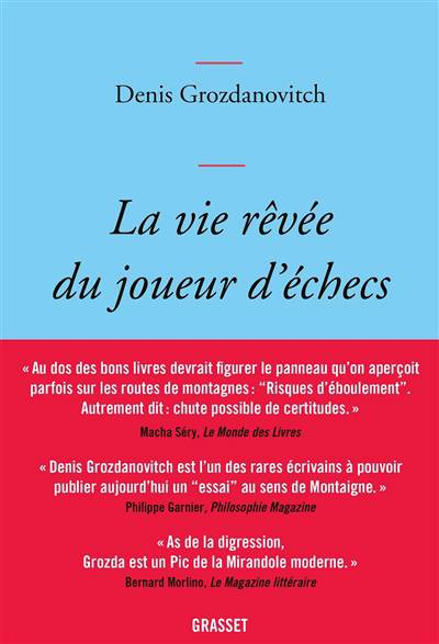 « Bien que lecteur et joueur de balles assidu dès mon plus jeune âge, j’ai fini par découvrir que le jeu d’échecs surpassait tous les autres en raison du pouvoir qu’il a de nous plonger au plus profond du rêve. Dans ce livre, je raconte comment, dans ma jeunesse, après avoir échappé de justesse au danger de l’enfermement mental qu’il peut aussi induire, j’ai fini par apprendre à m’en servir comme d’un moyen très sûr de traverser les périodes difficiles de l’existence, ce qui m’a été d’un secours providentiel. Outre ce pouvoir d’évasion, j’essaie de montrer dans ce livre en quoi la compétition échiquéenne constitue tout à la fois une excellente école de circonspection dans nos jugements, une pierre de touche de l’exactitude de nos raisonnements, et une précieuse ouverture sur la connaissance de soi-même. Chemin faisant, j’en profite pour brosser les portraits de divers joueurs passionnés dont les éventuelles prouesses intellectuelles – du moins dans le cas des meilleurs - s’allient à des manies hautement excentriques, offrant ainsi un spectacle baroque où l’aspect comique le dispute au pathétique. Enfin, j’essaie de mener une réflexion sur la fonction sociale du jeu, dont il me semble qu’elle pourrait nous montrer la voie d’une convivialité nettement plus enviable et chaleureuse que celle qui nous est proposée par l’esprit résolument utilitariste et planificateur qui a commencé de désenchanter le monde d’aujourd’hui. »