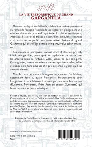 Dans cette adaptation théâtrale, à la fois libre mais respectueuse du roman de François Rabelais, le spectateur est plongé dans une mise en abyme du monde du spectacle. En pleine Renaissance, Alcofribas Nasier et sa troupe de comédiens ambulants viennent à la rencontre du public pour transmettre l'histoire du grand Gargantua qui, entre l'âge de trois à cinq ans, évolue tel un enfant-roi. Son père Grandgousier prenant conscience de ses capacités intellectuelles, il décide de le faire éduquer afin qu'il devienne le géant qu'il est amené à devenir. Mais la route qui mène à la sagesse sera semée d'embûches, notamment face au tyran Picrochole. Heureusement pour Gargantua, il sera fièrement épaulé par des amis humanistes (Eudemon, Ponocrates, Frère Jean ou encore Gymnaste) qui l'aideront dans sa quête initiatique.
