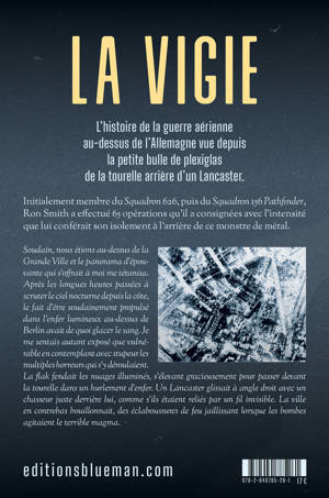 L'histoire de la guerre aérienne au-dessus de l'Allemagne vue depuis la petite bulle de plexiglas de la tourelle arrière d'un Lancaster. Initialement membre du Squadron 626, puis du Squadron 156 Pathfinder, Ron Smith a effectué 65 opérations qu'il a consignées avec l'intensité que lui conférait son isolement à l'arrière de ce monstre de métal. Le livre décrit avec des détails fascinants l'expérience nocturne d'être enfermé dans une capsule en plexiglas au-dessus du vide, la plupart du temps par un temps épouvantable, en attaquant des cibles parmi les mieux défendues de l'Allemagne nazie. « ...âSoudain, nous étions au-dessus de la ville... Après les longues heures passées à scruter le ciel nocturne depuis la côte, le fait d’être soudainement propulsé dans l’enfer brillant au-dessus de Berlin avait de quoi glacer le sang. La flak fendait les nuages illuminés, s’élevant gracieusement pour passer devant la tourelle dans un hurlement d’enfer. Un Lancaster glissait à angle droit avec un chasseur juste derrière lui, comme s’ils étaient reliés par un fil invisible. La ville en contrebas bouillonnait, des éclaboussures de feu jaillissaient lorsque les bombes agitaient le terrible magma... Plus haut, deux chasseurs inclinèrent leurs ailes pour attaquer un Lancaster derrière nous, s’en détachant au moment où le bombardier s’enflammait. Le bombardier restait sur une trajectoire horizontale, continuant à voler, comme s’il n’accordait aucune importance à ses blessures pourtant mortelles. De minuscules silhouettes s’en détachèrent, l’une après l’autre, pour tomber à travers la voûte blanche des nuages dans le brasier, loin au-dessous, le Lancaster dérivant vers le bas, prenant soudain de la vitesse et disparaissant à jamais... »