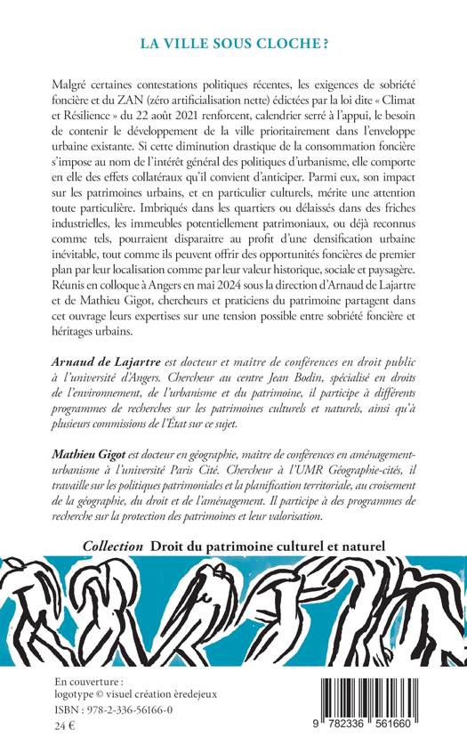 Malgré certaines contestations politiques récentes, les exigences de sobriété foncière et du ZAN (zéro artificialisation nette) édictées par la loi dite Climat et Résilience du 22 août 2021 renforcent, calendrier serré à l'appui, le besoin de contenir le développement de la ville prioritairement dans l'enveloppe urbaine existante. Si cette diminution drastique de la consommation foncière s'impose au nom de l'intérêt général des politiques d'urbanisme, elle comporte en elle des effets collatéraux qu'il convient d'anticiper. Parmi eux, son impact sur les patrimoines urbains, et en particulier culturels, mérite une attention toute particulière. Imbriqués dans les quartiers ou délaissés dans des friches industrielles, les immeubles potentiellement patrimoniaux, ou déjà reconnus comme tels, pourraient disparaitre au profit d'une densification urbaine inévitable, tout comme ils peuvent offrir des opportunités foncières de 1er plan par leur localisation comme par leur valeur historique, sociale et paysagère. Réunis en colloque à Angers en mai 2024 sous la direction d'A. de Lajartre et de M. Gigot, chercheurs et praticiens du patrimoine partagent dans cet ouvrage leurs expertises sur une tension possible entre sobriété foncière et héritages urbains.