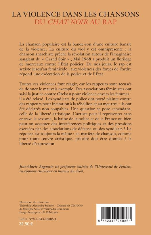 La chanson populaire est la bande-son d’une culture banale de la violence. La culture du viol y est omniprésente ; la chanson anarchiste prêche la révolution autour de l’imaginaire sanglant du « Grand Soir » ; Mai 1968 a produit un florilège de morceaux contre l’État policier. De nos jours, le rap est sexiste jusqu’au féminicide ; aux violences des forces de l’ordre répond une exécration de la police et de l’État. Toutes ces violences font réagir, car les rappeurs sont accusés de donner le mauvais exemple. Une question se pose cependant, celle de la liberté artistique. La réponse est toujours la même : en matière de chanson, comme pour toute oeuvre artistique, priorité doit être donnée à la liberté d’expression.