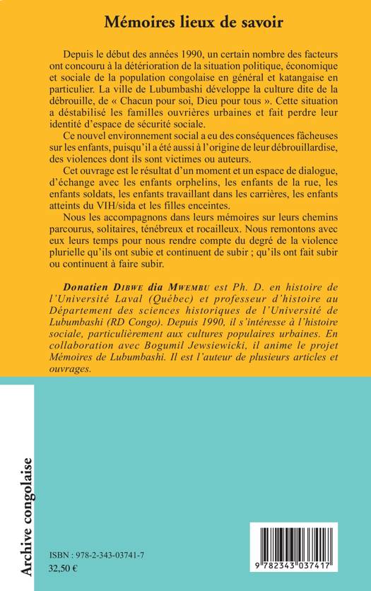 Depuis le début des années 1990, un certain nombre de facteurs ont concouru à la détérioration de la situation politique, économique et sociale de la population congolaise en général et katangaise en particulier. Ce nouvel environnement social a eu des conséquences fâcheuses sur les enfants, puisqu'il a été aussi à l'origine de leur débrouillardise, des violences dont ils sont victimes ou auteurs. Cet ouvrage est le résultat d'un échange avec les enfants orphelins, des enfants de la rue, enfants-soldats, travailleurs... victimes et bourreaux.
