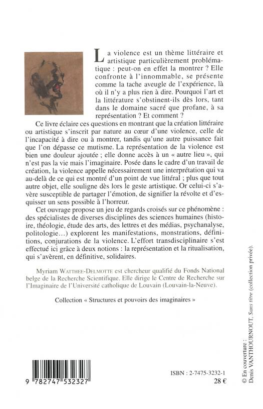 La violence est un thème littéraire et artistique particulièrement problématique : peut-on en effet la montrer ? Pourquoi l'art et la littérature s'obstinent-ils dès lors, tant dans le domaine sacré que profane, à sa représentation ? Et comment ? Cet ouvrage propose un jeu de regards croisé sur ce phénomène : des spécialistes de divers disciplines des sciences humaines explorent les manifestations, démonstrations, définitions, conjurations de la violence. L'effort trandisciplinaire s'est effectué ici grâce à deux notions : la représentations et la ritualisation, qui s'avèrent, en définitive, solidaires.